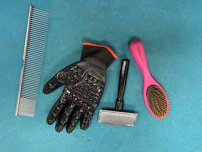 For all dogs, self-brushing is impossible. Since they are unable to brush themselves (dewclaws don’t oppose!), they need someone with a thumb who is capable of picking up and operating objects… us! Good quality time can be spent brushing your dog. It’s an activity that lets them know you care, is associated with good feelings, and can even help you bond! Below is my suggested list of the minimum amount per week that each coat type needs brushed, along with the proper tool. Note: hairless and corded types are omitted, as I am currently on a mission to learn more about them myself!