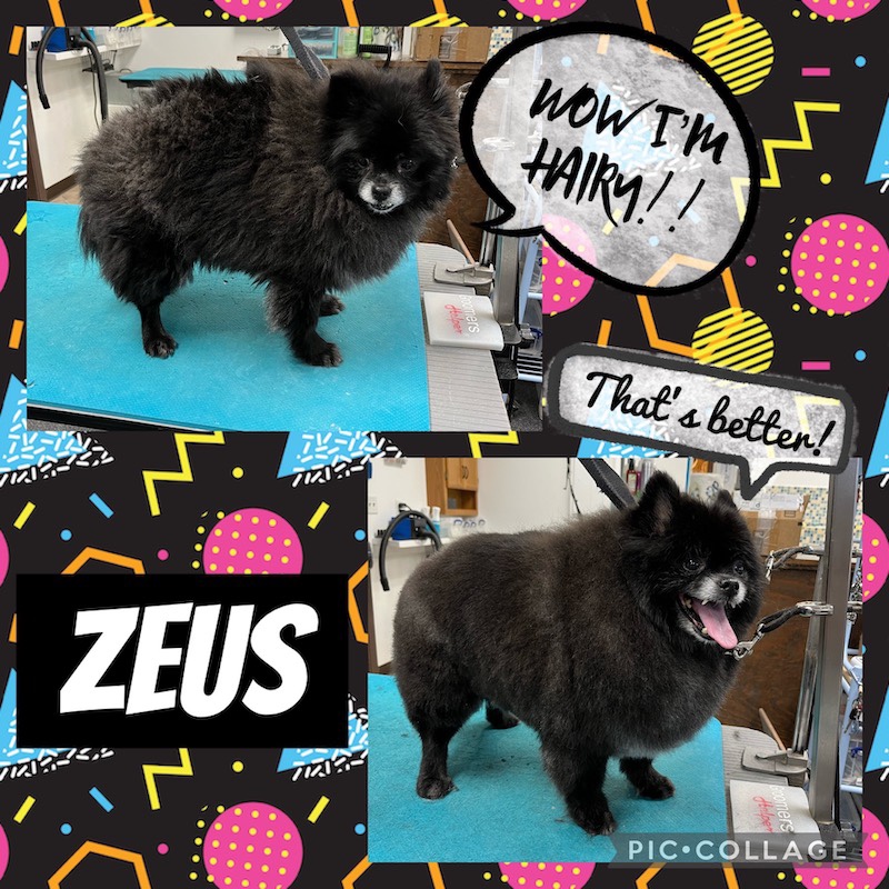 I cannot take all the credit for Zeus’s fabulous fur. Topical treatment was but one aspect of the entire process. It stands to reason that without proper diagnosis and underlying treatment from his vet, as well as proper nutrition and home care provided by his mom, we never would’ve come this far. The pet parent, the veterinarian, the stylist: this is the trifecta of perfection for enabling a coat to grow. Add in the factors of patience and time, and you have… one happy, hairy, handsome Pomeranian!