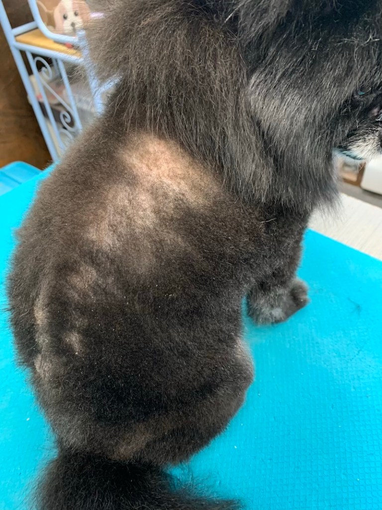 In early January of 2021, I received a call from a client. She lost her beloved Pomeranian to old age a few months prior, and now found herself enamored with a new tiny spitz. Upon visiting the local pet rescue, Angels for Animals, it was love at first sight with a small black Pom who she named Zeus. The little senior guy had rather large problems: significant hair loss over most of his body, and hard scaly skin on his back. She called and asked if there was any way I might be able to help him out. And so, the journey began!